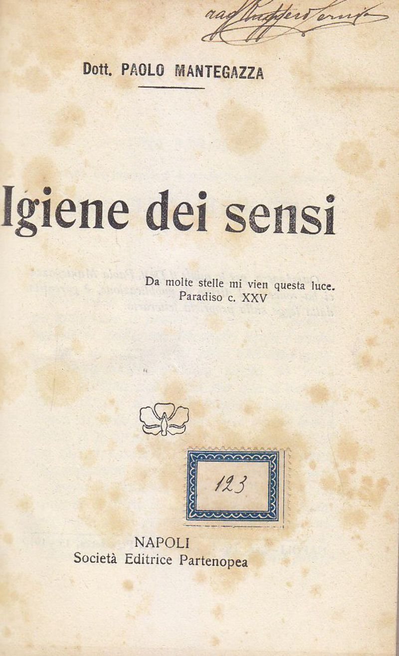 IGIENE DEI SENSI di Paolo Mantegazza 1910 Societa’ Editrice Partenopea libro