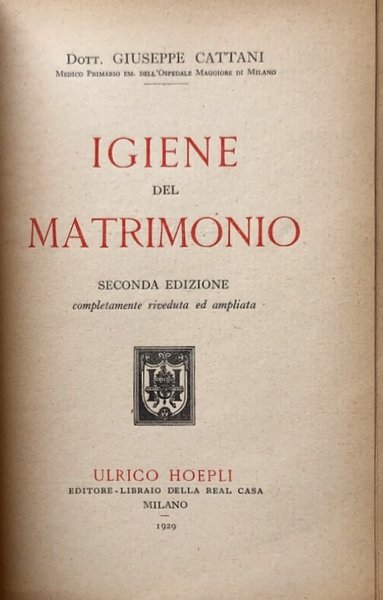 - Libri Vintage, Manuali Hoepli, Matrimonio, Fisiologia, Igiene, Medicina, Sessualità, Morale, Etica, Sociologia, Erotismo, Educazione sessuale, Vita coniugale, Eugenica, Salute, Famiglia, Società italiana otto-novecentesca, Crisi matrimoniale