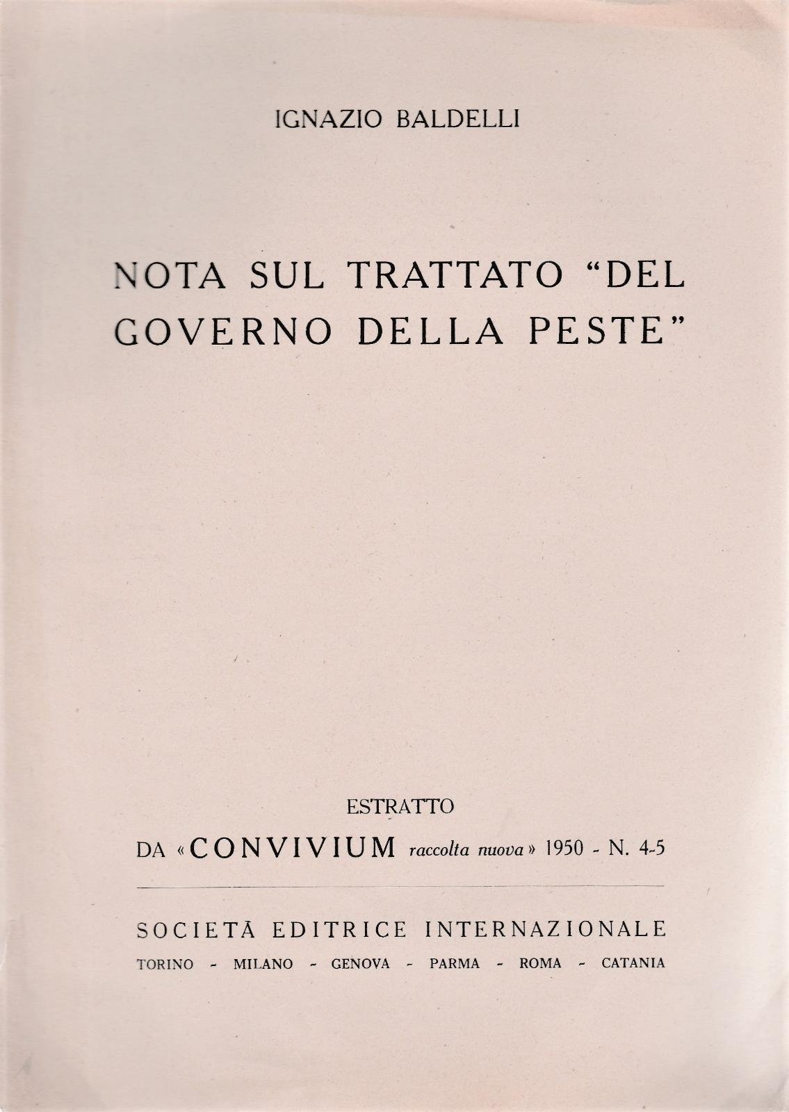Ignazio Baldelli Nota sul trattamento del governo della peste estratto 1950