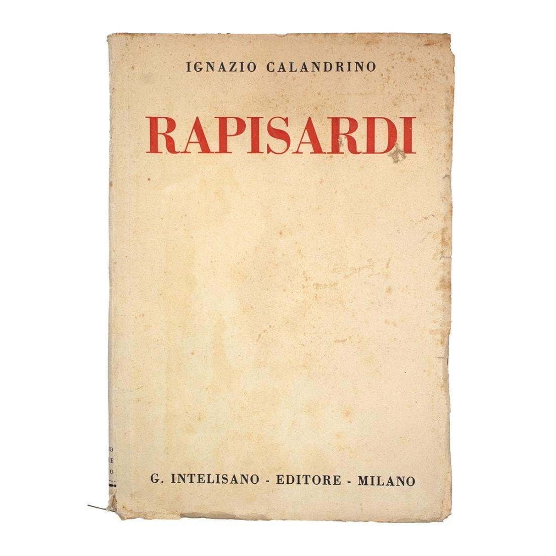 Autore: Ignazio Calandrino Titolo: Rapisardi Note: Firma e dedica dell'Autore Edizione: Casa Editrice G. Intelisano - Stampato presso la tipografia "La Grafa" - Milano 1938, Prima edizione. Dimensioni: 22,5 x 15,5 cm c.a. Pagine: 269 Copertina: Brossura Condizioni: Buone come da foto