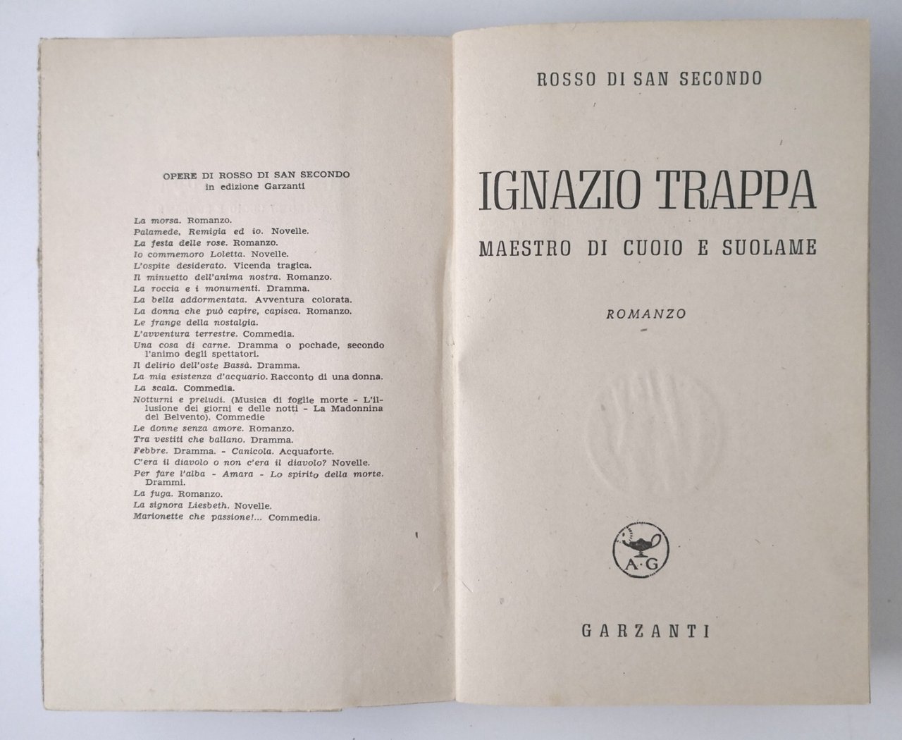 IGNAZIO TRAPPA maestro cuoio Rosso Di San Secondo 1943 Garzanti Libro Romanzo