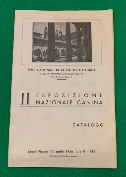 In 8°; (24) pp. Brossura editoriale illustrata. Alcuni segni a penna per sottolineare alcuni esemplari apprezzati dal possessore del catalogo e per il resto, esemplare in buone-ottime condizioni di conservazione. Prima edizione di questo catalogo che riporta tutti i partecipanti della II° Esposizione Nazionale Canina che si tenne ad Ascoli Piceno nel 1956. Molto raro.