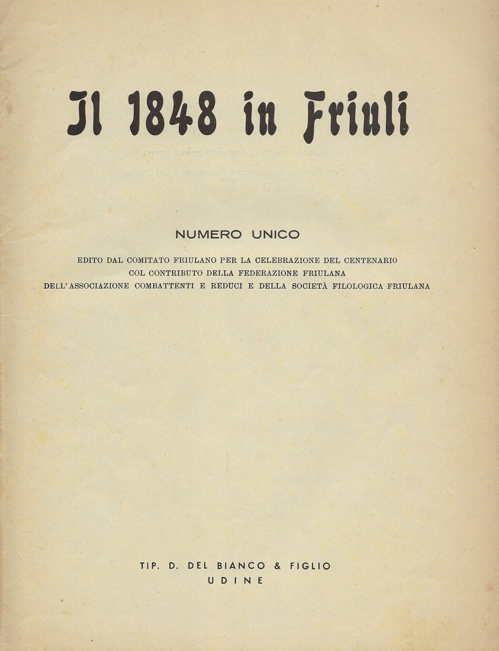Edito dal Comitato friulano per la celebrazione del centenario col contributo della Federazione friulana dell'Associazione combattenti e reduci e della Società filologica friulana. Contiene saggi di P. S. Leicht, A. Faleschini, P. Someda de Marco, etc.