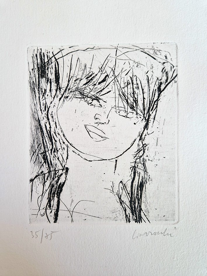 4°; pp. non num. 20 a quartini sciolti su carta a mano con barbe, testo di Pellegrino Artusi con tre piccole acqueforti dell'artista, seguono, sciolte, dieci acqueforti numerate e firmate a matita. Cartella cartone editoriale con titoli al dorso e al piatto, sovraccoperta illustrata.