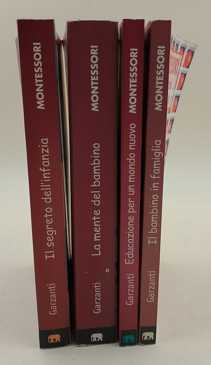 4 voll, br. ed., pp. 139+147+293+308, Volumi in buono stato, editi tra il 2000(il bambino in famiglia, prima edizione nella collana) e educazione per un modo nuovo , e il 2002, ristampe e seconde edizioni.