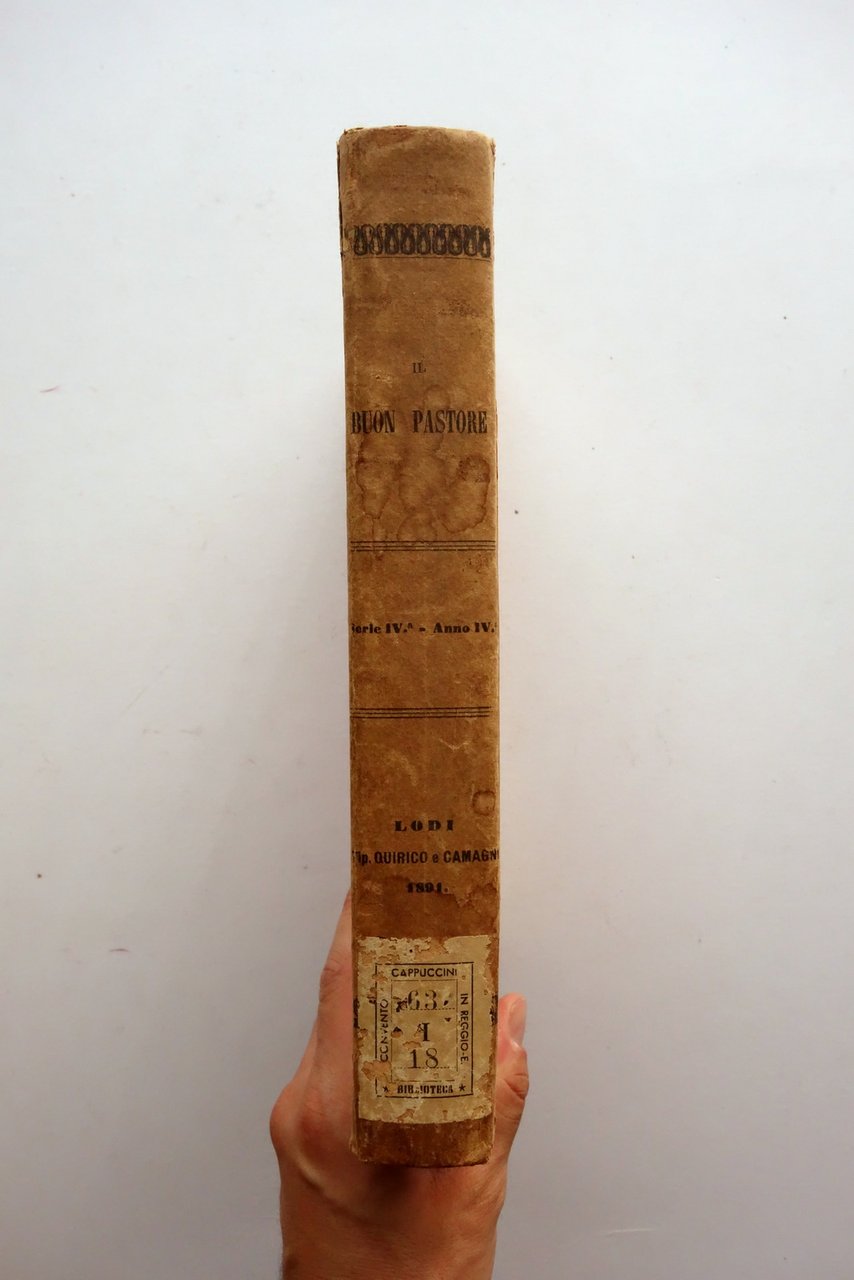 † Il Buon Pastore periodico religioso con approvazione dell'autorit‡ ecclesiastica compilato per cura del Sacerdote Carlo Bersani serie IV - anno VI - annata completa Tip. Vescovile Quirico e Camagni, Lodi 1891; cm 30x20; pp. complessive 760 (numerazione progressiva annuale); legatura d'epoca in tutto cartonato con fregi ai piatti. Dorso con applicata etichette di ex biblioteca conventuale. Al frontespizio timbretto di ex biblioteca. † Condizioni di conservazione Buone condizioni con tracce d'uso e leggeri segni del tempo, coperta con piccole mancanze e ondulazioni al rivestimento, leggere tracce di sporco e qualche alone / gora (vedi foto). Interni buoni con minimi marginali accenni di ingiallimento dovuti al tipo di carta. † Ottime condizioni. † SETT161.L24326 N