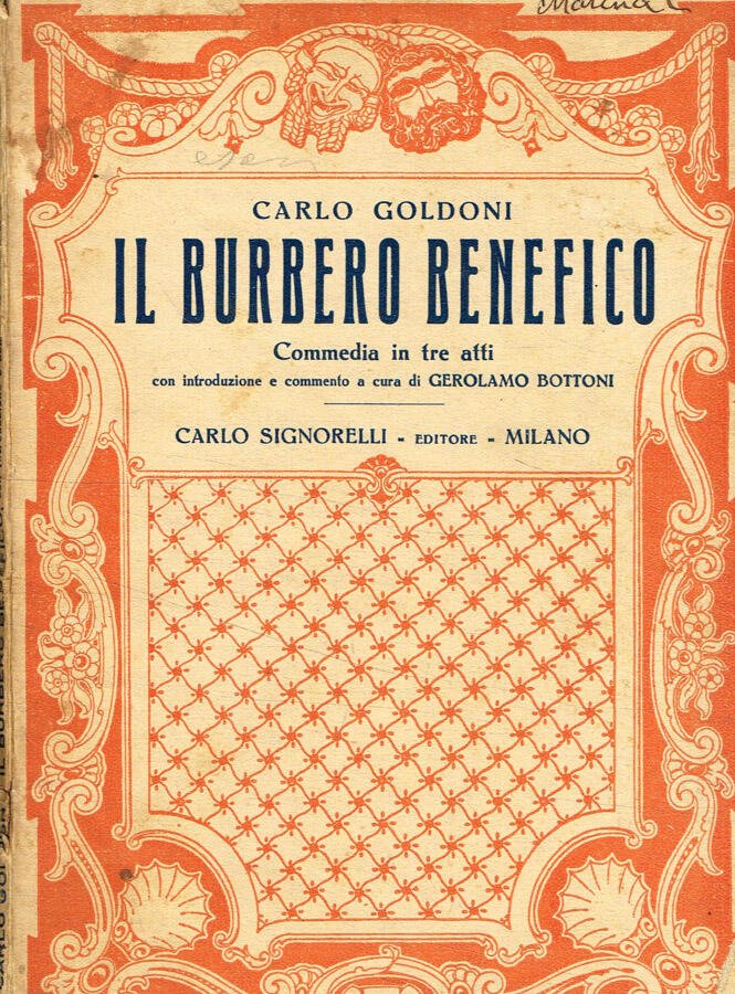 Commedia in 3 atti, con introduzione e commento a cura di Gerolamo Bottoni, pagine brunite ai bordi e con qualche sporadica fioritura, brossura editoriale flessibile, illustrata, ingiallita, con fioritura, qualche macchia, firma appartenenza e macchia d'inchiostro al piatto anteriore, strappo e mancanza all'angolo inf.ant., strappetti e mancanze al piede ed alla cima. Numero pagine 53