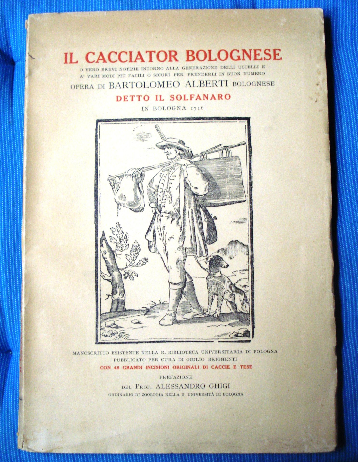 IL CACCIATOR BOLOGNESE O VERO BREVI NOTIZIE INTORNO ALLA GENERAZIONE DEGLI UCCELLI E À VARI MODI PIÙ FACILI O SICURI PER PRENDERLI IN BUON NUMERO. UTILE AI VERI INDAGATORI DELLE COSE NATURALI ED UTILISSIMA A CHIUNQUE VUOLE ISTRADARSI NELL'ESERCIZIO DILETTEVOLE DI CACCIATORE.,