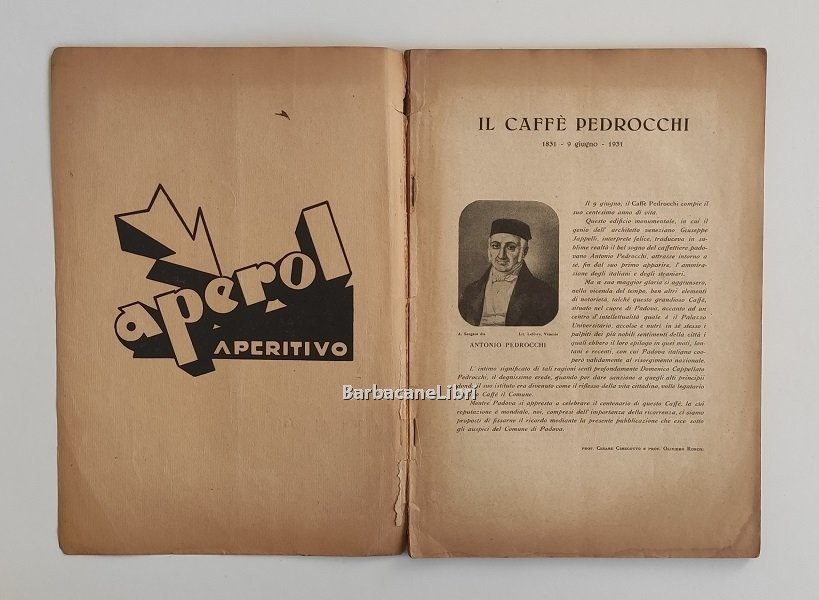 Il 9 giugno, il Caffè Pedrocchi compie il suo centesimo anno di vita. Questo edificio monumentale, in cui il genio dell'architetto veneziano Giuseppe Jappelli, interprete felice, traduceva in sublime realtà il bel sogno del caffettiere padovano Antonio Pedrocchi, attrasse intorno a sé, fin dal suo primo apparire, l'ammirazione degli italiani e degli stranieri. Ma a sua maggiore gloria si aggiunsero, nella vicenda del tempo, ben altri elementi di notorietà, talché questo grandioso Caffè, situato nel cuore di Padova, accolse e nutrì i palpiti dei più nobili sentimenti della città i quali ebbero il loro epilogo in quei moti, lontani e recenti, con cui Padova italiana cooperò validamente al risorgimento nazionale.