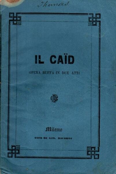 "Il caid. Opera buffa in due atti", pp. 50, formato 11,5 x 17.
