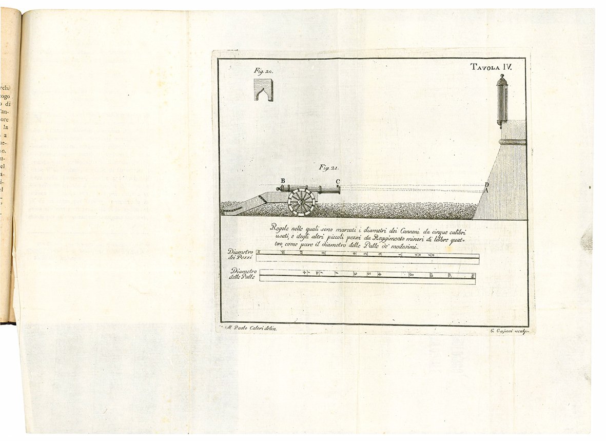 First edition of this work on artillery that was reprinted in Milan in 1894. The author was an officer and military engineer, commanding the entire Cisalpine artillery during the Napoleonic wars in Italy (cf. G. Boccolari, Calori Stremiti, Giovanni Paolo, in: “Dizionario Biografico degli Italiani”, vol. 16, 1973, s.v.).