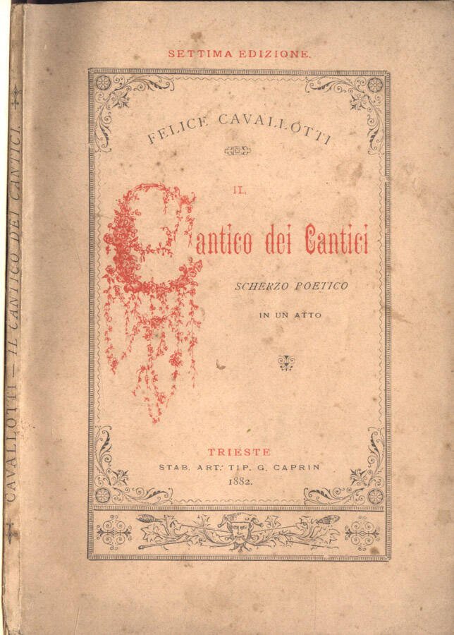 Volumetto brossurato in cartoncino flessibile, dalla copertina brunita e macchiata. Buono lo stato di conservazione e pagine ben tenute, ossidate da tonalità seppia, come i tagli, e segnate da fioriture. Numero pagine 63.