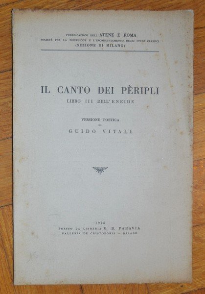 *Il Canto dei Pèripli - Libro III dell'Eneide. Versione Poetica di Guido Vitali. Pubblicazione dell'Atene e Roma. Società per la diffusione e l'incoraggiamento degli studi classici (Sezione di Milano)