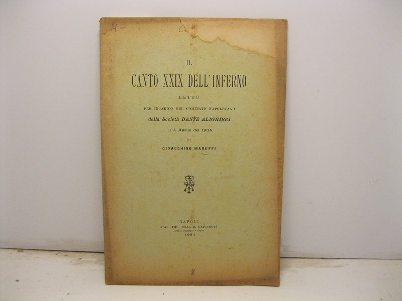 Il canto XXIX dell'Inferno letto per incarico del comitato napoletano della Societa' Dante Alighieri il 4 aprile del 1904