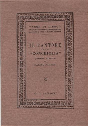 Firenze, Sansoni 1948, cm.12x16, pp.24, 6 ill.in bn.nt., brossura un punto metallico, cop.ornata. Coll.Amor di Libro,1. Edizione numerata in 333 esemplari. STATO: USATO, COME NUOVO. NOTE: fondo di magazzino.