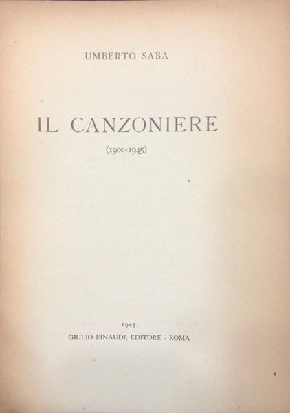 Brossura originale, copertina flessibile illustrata, dorso ottimo, legatura salda, pp 610. Prima edizione, firma di possesso alla prima carta bianca. Edizione tirata in 2900 copie non numerate, di cui una decina circa su carta scelta, per gli amici del poeta, e poche centinaia rilegate in tela. é dai primi anni trenta che Umberto Saba vorrebbe ripubblicare una versione corretta e aumentata del ÇCanzoniereÈ, ormai da tempo esaurito nella sua prima edizione 1921. Dopo un lungo e faticoso lavoro, il titolo fu pubblicato nella collana dedicata alla poesia, dove erano giˆ apparsi Montale e Pavese. La raccolta fu insignita del premio Viareggio 1946, a pari merito con ÇPane duroÈ di Silvio Micheli. Esemplare molto buono