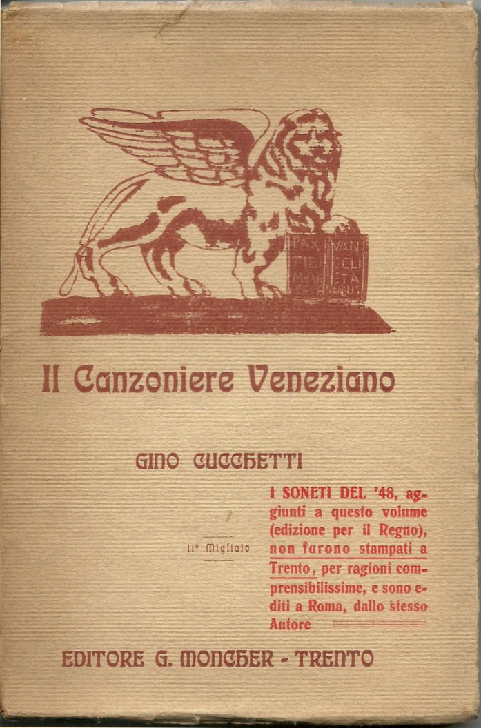 In 16, p. 186, br. orig. - L'opera fu stampata da due editori diversi, a causa della censura austriaca, e poi rilegata in un'unica brossura con due distinti frontespizi. Lunga dedica autogr. dell'a. all'occhietto.