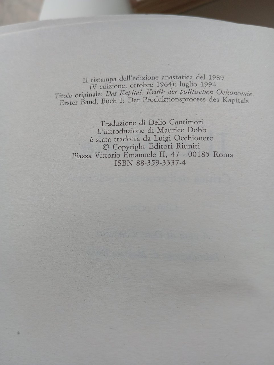 Il capitale, Karl Marx, 3 volumi in cofanetto, Editori Riuniti, 1994