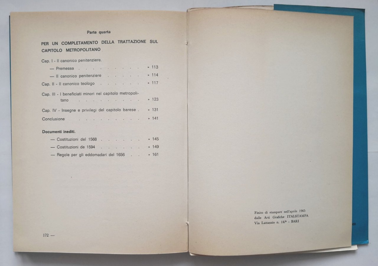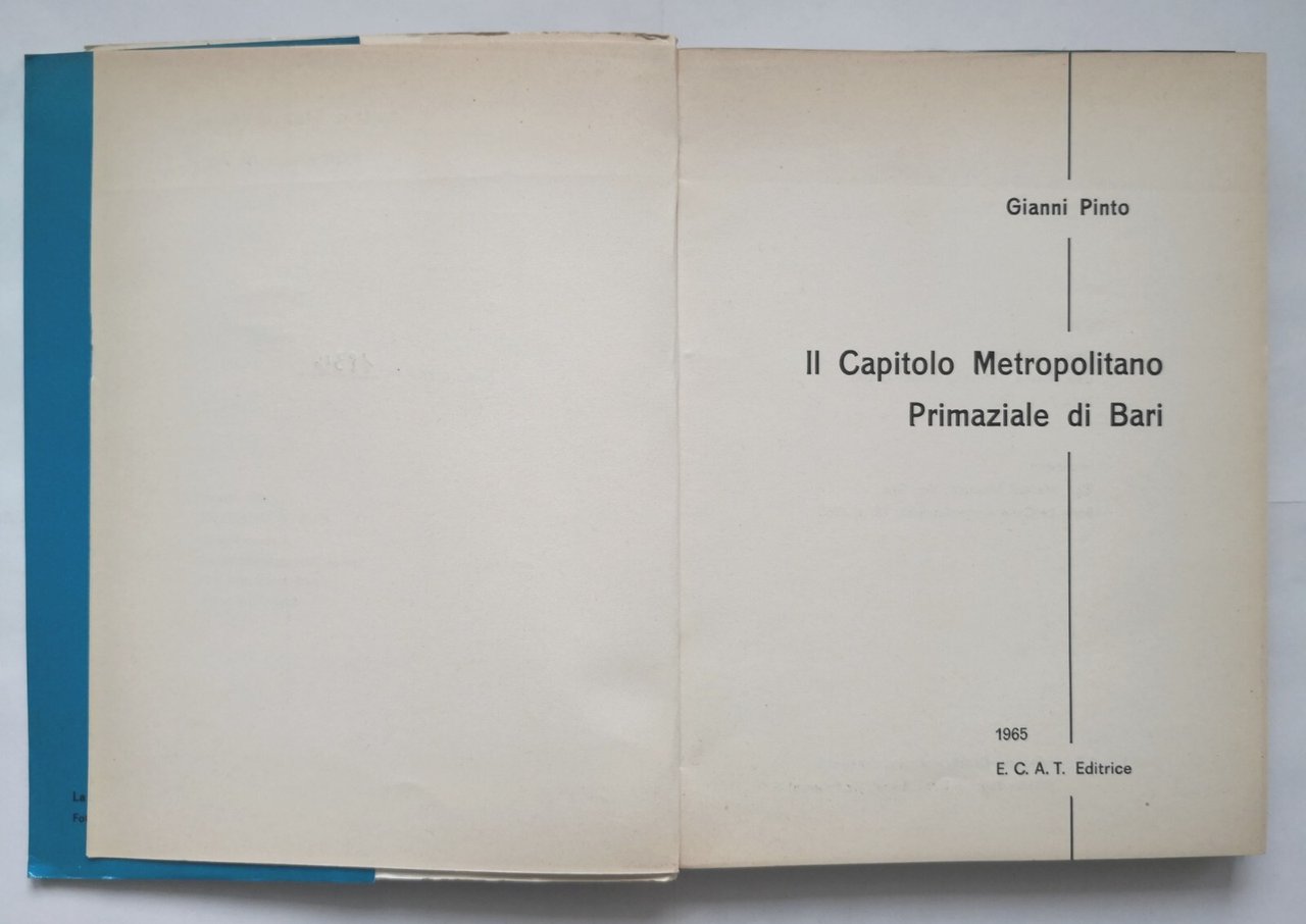 IL CAPITOLO METROPOLITANO PRIMAZIALE DI BARI di Gianni Pinto 1965 ECAT Libro
