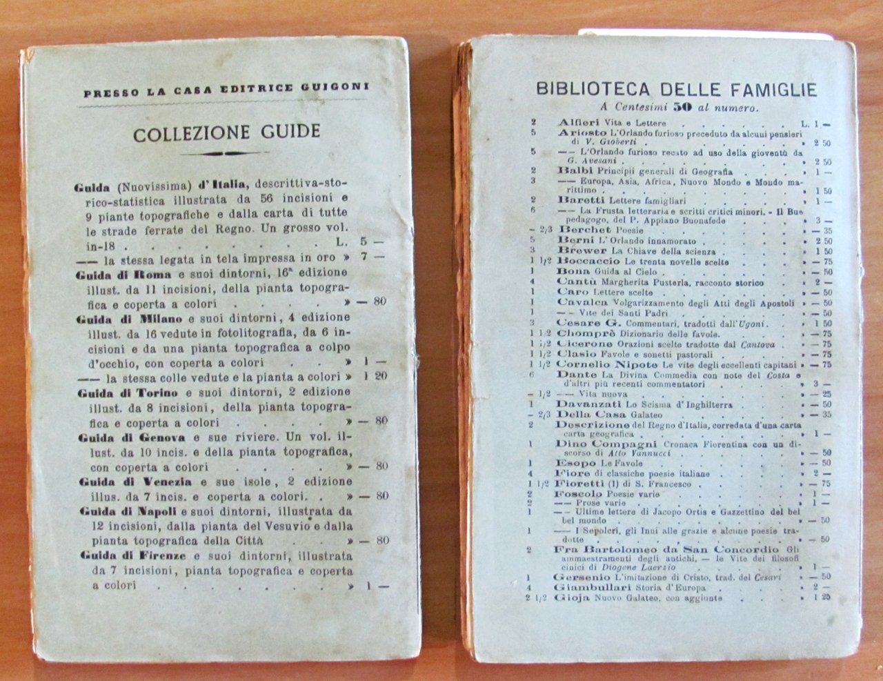2 tavole in b/n a piena pagina in ciascun volume. Casa Editrice Guigoni - Milano, 1887. Brossure editoriali con lievi imperfezioni del tempo ai dorsi. 10,5x16; pp.120 + 120. Buonissimo stato. , Molto buono (Very Good)