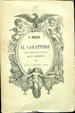 In-16° grande, pp. XXVIII, 388, brossura editoriale con titolo entro cornice figurata disegnata da Ratti con un'aquila, due putti e figurazioni varie. Ritratto di Smiles in antiporta. Una firma del tempo ('Ferdinando Negri'). In barbe. Ottimo stato. Celebre opera edificante dello scrittore scozzese, in cui gli esempi di coraggio e virtù di uomini celebri vengono addotti come ammaestramenti morali. Samuel Smiles (Haddigton, Scozia, 1812-Kensington, 1904) fu autore di libri divulgativi sul risparmio e sull'autoeducazione morale che ebbero larghissima fortuna in Europa e negli Stati Uniti, di cui il più celebre è senz'altro il 'Sef-Help'. Poligrafo, giornalista, uomo d'affari, riformatore sociale, Smiles 'is the epitome of that energetic probity which characterizes the best side of Victorian society' ('Printing and the Mind of Man', n. 346). 'L'opera dello Smiles, priva di qualsiasi pretesa letteraria o artistica, è animata dal più semplice buon senso: la sua enorme fortuna può spiegarsi col fatto ch'essa riflette nel suo empirismo, e nella sua moralità spicciola, la mentalità di buona parte della società dell'epoca in cui fu scritta' (Ada Prospero Marchesini in Dizion. Bompiani d. Opere, II, 230).