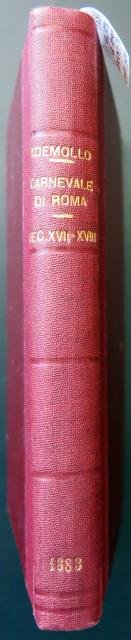 Casa Editrice A. Sommaruga, Roma, 1883. VI° migliaio. In 12esimo, Indice a inizio volumetto, pp. XIII (Avvertenza), 168 + 9 editoriali, piacevole e di poco posteriore leg. amatoriale in percallina e tela bordeau (non conservata la bross. orig.). Apprezzato studio in cui, oltre alla descrizione storica dei carnevali, palii, maschere e mascherate, castigamatti e festini si offrono le descrizioni di importanti pensatori come Montaigne, De Brosses Casanova, Goethe, M. Me de Stael. Usuale ingiallimento del tempo, solida e piacevole legatura, buono stato di conservazione. .