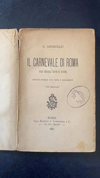 Il carnevale di Roma nei secoli XVII e XVIII. Appunti storici con note e documenti