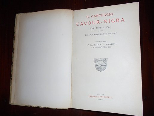 IL CARTEGGIO CAVOUR - NIGRA DAL 1858 AL 1861. LA CAMPAGNA DIPLOMATICA E MILITARE DEL 1859. A cura della R. Commissione Editrice.