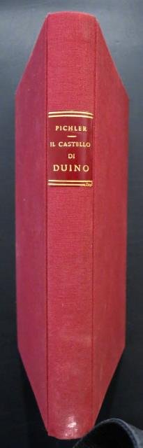 2. Trento, Stabilimento Tipografico di Giovani Seiser, 1882. In 4to, antip. con litografia in b/n protetta da velina del castello di Duino (L. Scotoni e Vitti Trento), pp. VIII, 469, alcune ill. incise in b/n n. t. raffigurano armi nobiliari + 3 tavole genealogiche in fine più volte rip. + Indice + Aggiunte e correzioni, leg. amatoriale in tutta tela rossa con titolo oro su tassello (conservata sotto la bross. orig. edit. in carta celestina che presenta solo una piccola mancanza all'angolo sinistro della copertina ant.). Fondamentale studio sul castello di Duino, nel comune di Duino - Aurisina, in provincia di Trieste, da quasi cinquecento anni proprietà della famiglia Della Torre (oggi aperto al pubblico). L’Autore, apprezzato storico, membro di numerose accademie e direttore del Ginnasio Superiore di Trento, ricostruisce con precisione e attendibilità la storia delle casate che si avvicendarono nel possesso del castello; alle notizie generali segue un capitolo dedicato ai primi abitatori del castello fino ai Torriani, segue un vasto capitolo dedicato ai conti della Torre - Hofer - Valsassina, concludono l’opera le tre tavole genealogiche. Prima originale edizione di questa opera rilevante e non comune. Un normale ingiallimento delle pagine ma conservazione molto buona. .