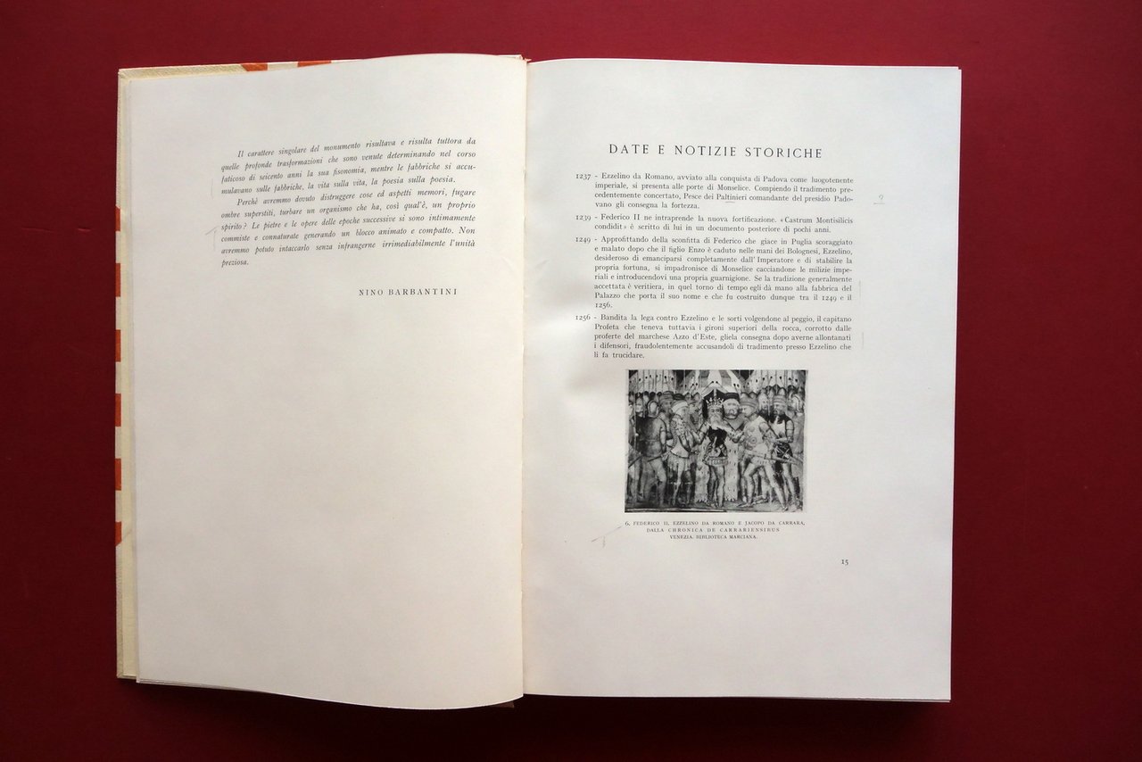 Importante opera dedicata al Castello di Monselice, che fu sottoposto negli anni '30 del Novecento a un significativo e complesso intervento di restauro conservativo, voluto dall'allora proprietario Conte Vittorio Cini. Il direttore dei lavori fu proprio l'architetto Barbantini. Alla seconda di copertina nota del precedente proprietario, il critico d'arte Giulio Bariola, nella quale afferma che il volume gli fu donato dallo stesso Barbantini.
