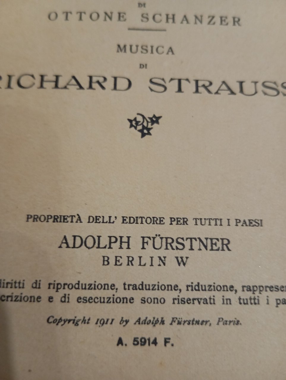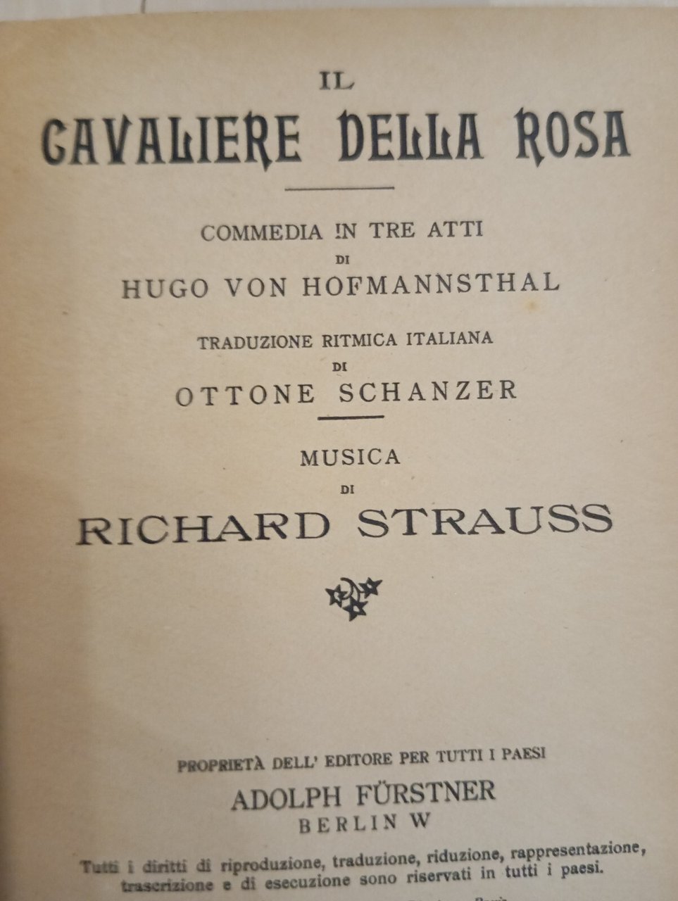 Il cavaliere della rosa, Richard Strauss, Sonzogno, 1911