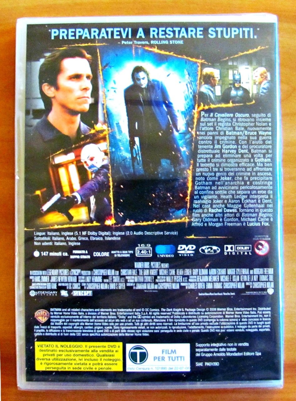 DVD BATMAN. Il cavaliere oscuro. Regia di Christopher Nolan con C. Bale, M. Caine, H. Ledger, G. Oldman. BLISTERAT. Nuovo. ,