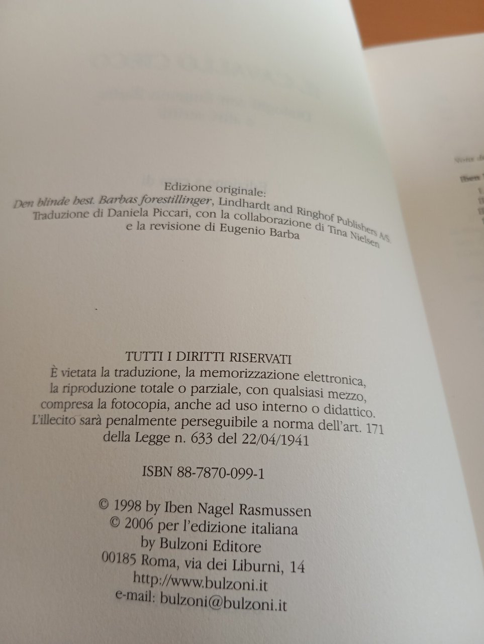 Il cavallo cieco, Iben Nagel Rasmussen, Bulzoni, 2006