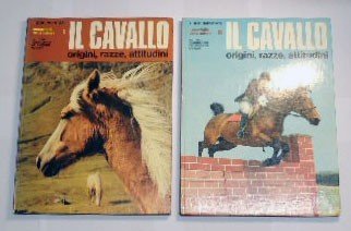 Il cavallo. Origini, razze, attitudini, a cura di Nereo Lugli, Istituto Geografico De Agostini, Novara 1972, prima ed., 2 voll., pp. 127, in gran parte ill. col., cm 31, cart. ed. Collana I documentari. Le meraviglie della natura, nn. 54-55. Opera proveniente dalla biblioteca di un celebre pittore italiano contemporaneo. Il primo volume presenta lievi tracce d’uso e qualche macchiolina di pittura ai piatti e al dorso, e macchioline di pittura e segno di piegatura agli angoli di due pagine, le cui illustrazioni sono probabilmente state usate per trarre modelli per dipinti, per il resto ben conservato. Secondo volume perfetto.