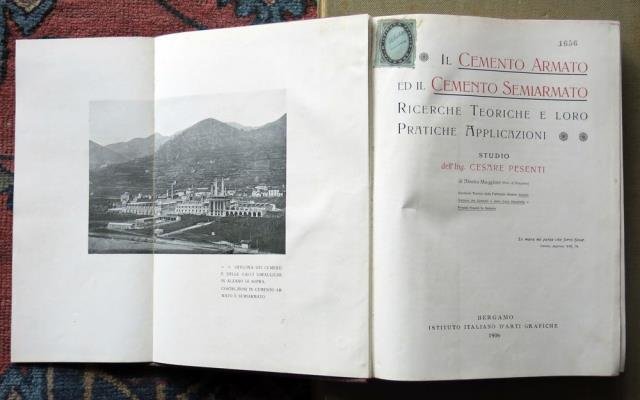 Il cemento armato ed il cemento semiarmato. Ricerche teoriche e loro pratiche applicazioni. Studio dell'Ing. Cesare Pesenti di Alzano Maggiore (Prov. Di Bergamo. Direttore Tecnico delle Fabbriche Riunite Società Italiana dei Cementi e delle Calci Idrauliche e Fratelli Pesenti fu Antonio.