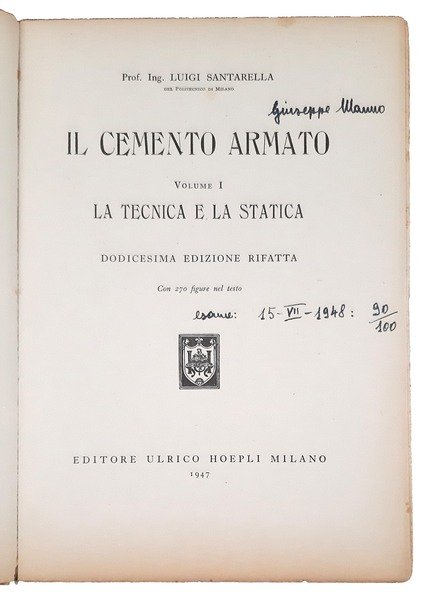 Il cemento armato. Volume primo. La tecnica e la statica. Dodicesima edizione rifatta. Con 270 figure nel testo.