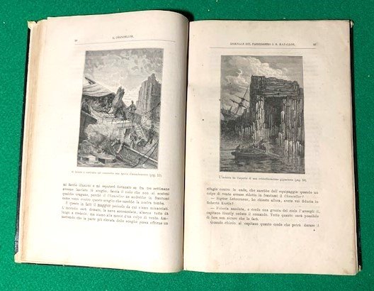 In 4° (19,2X12,5 cm); (4), 183, (1) pp. Legatura coeva in mezza-pelle scura con dorso a 5 nervi. Autore, titolo, e filetti in oro ai tasselli. Piatti foderati di percallina nera. Alcune strofinature. Alcuni lievi segni del tempo e nel complesso, in buone condizioni di conservazione. Prima edizione italiana di questo romanzo classico di Jules Verne che narra in forma diaristica lultimo viaggio della nave inglese Chancellor. L'opera venne stampata, in italiano, nello stesso anno della prima edizione francese. 1875. Lopera ebbe un grande successo tanto che già al 1876, la Tipografia Editrice Lombarda pubblicò tre edizioni. Questa è, probabilmente, la terza edizione. La prima edizione, porta la data 1875, la seconda 1876 e presenta 44 illustrazioni nel testo e la terza edizione, quattro tavole in più. Una piccola mancanza all'angolo alto del frontespizio. Qualche macchiolina ma nel complesso buon esemplare.