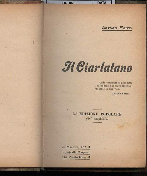 IL CIARLATANO-Colla coscienza di aver fatto il meno male possibile, racconto la mia vita