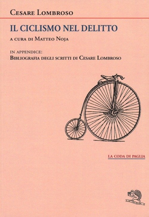 Nel saggio che qui presentiamo, uscito sulla "Nuova Antologia" nel 1900, l'autore dell' "Uomo delinquente" argomenta con dovizia di particolari la pericolosità sociale della bicicletta. Essa infatti aumenta le cifre e le cause della criminalità; agevola le fughe e gli alibi di coloro che violano la legge; è motivo frequentissimo di furto e di appropriazioni indebite; può infine condurre anche all'omicidio. Pure legandola alle attività criminali, però, Lombroso non può mancare di sottolineare nell'ultima parte di questo breve scritto anche le qualità indiscutibili della bicicletta. Concludendo, egli infatti, scrive: "E se una satira arguta ha voluto mostrarci il "cicloanthropos" dell'avvenire come curvo, colle braccia atrofiche, e la schiena gibbosa, io amo invece poter dire che il "cicloanthropos" del secolo Ventesimo soffrirà meno di nervi, sarà più robusto di muscoli dell'uomo del secolo ora trascorso. E così certamente per uno o due mali che il biciclo ci provoca, saranno dieci i beni che ci recherà in dono". In appendice bibliografia degli scritti di Cesare Lombroso.