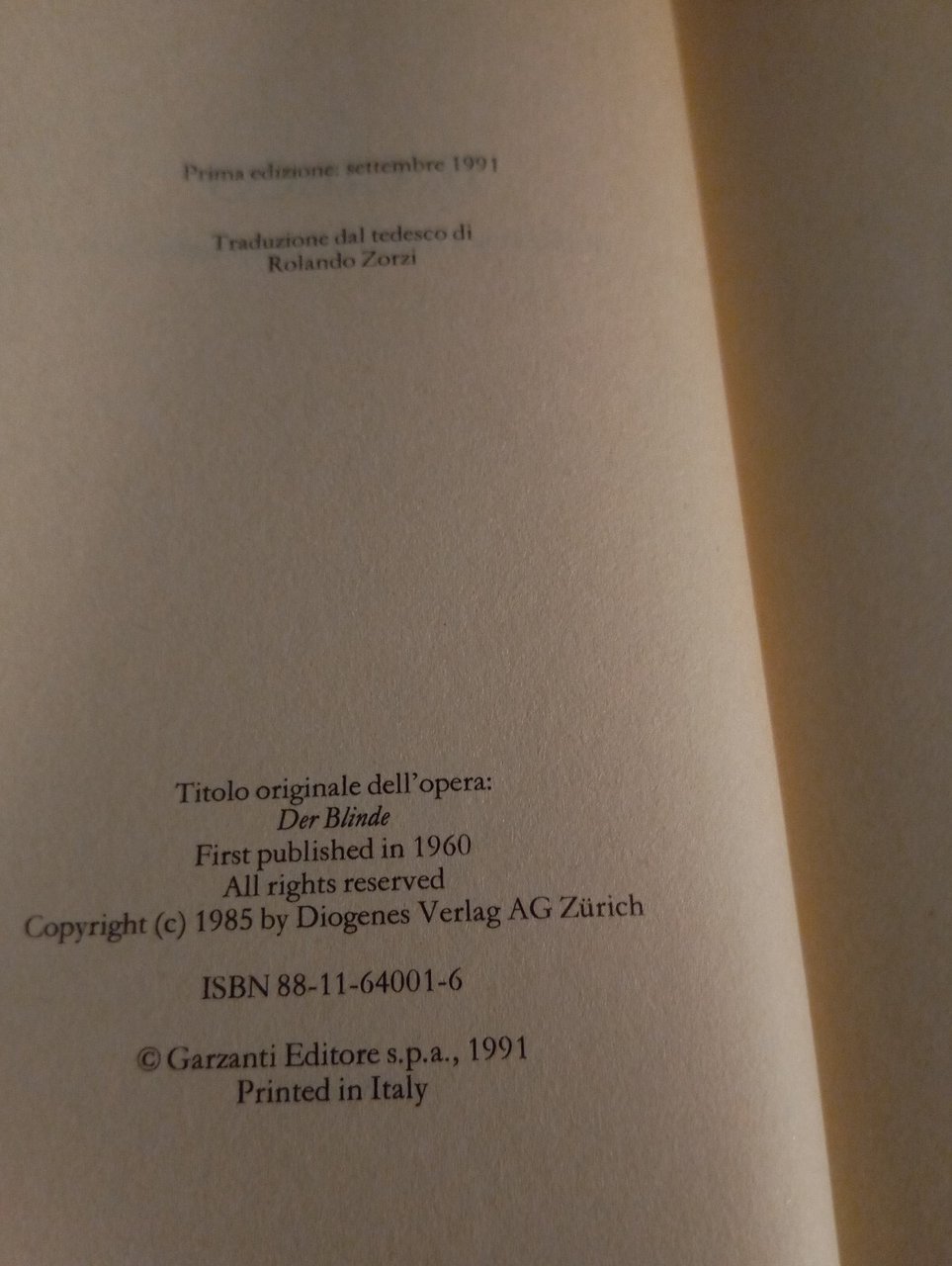 Il cieco, Friedrich Durrenmatt, Garzanti, 1991