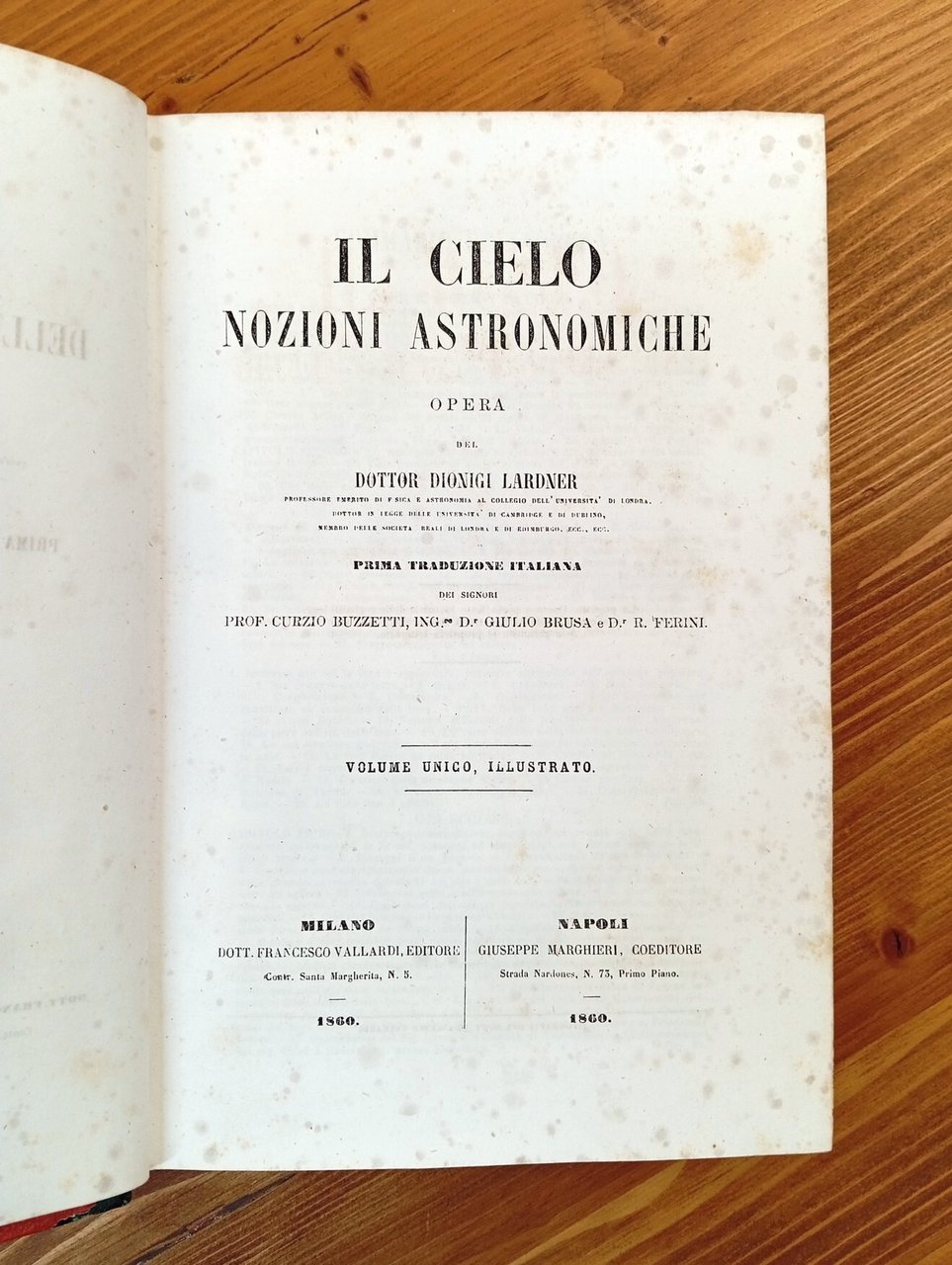 Secondo volume monografico, in sé completo, dell'opera "Il Museo delle Scienze e delle Arti", nella prima traduzione italiana con note ed aggiunte, illustrata da circa 1200 incisioni complessive. Volume unico, illustrato - Legatura in mezza pelle verde scuro con titoli e fregi in oro al dorso, piatti in tela rossa, 652 pagine con numerose incisioni in nero lungo l'intero testo. Traduzione del Prof. Curzio Buzzetti, Dr. Giulio Brusa e Dr. R. Ferini. Ordinarie fioriture e arrossamenti alle carte, nel complesso esemplare in buone-ottime condizioni di un'edizione non comune.