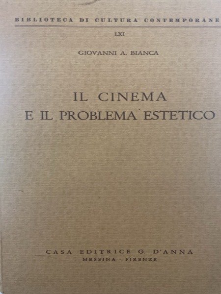 IL CINEMA E IL PROBLEMA ESTETICO Giovanni A Bianca Editrice D Anna Spettacolo di