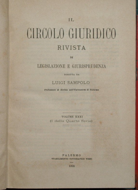 Rivista di legislazione e giurisprudenza - Diretta da Luigi Sampolo - Collana Il circolo giuridico. Quarta serie - n. 1 - in 8° - pp.XVIII + 370 + 339 + 134 + 48 + 92 + 91 - Tela con titolo in oro al dorso - Parte Prima; Parte Seconda: Decisioni in materia civile e commerciale; Parte Terza: Decisioni in materia penale; Parte Quarta: Decisioni in materia amministrativa; Parte Quinta: Leggi e decreti; Indice