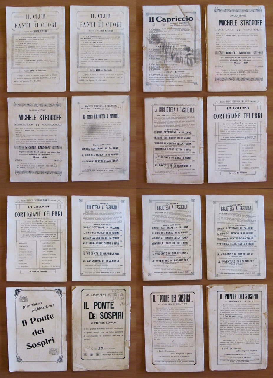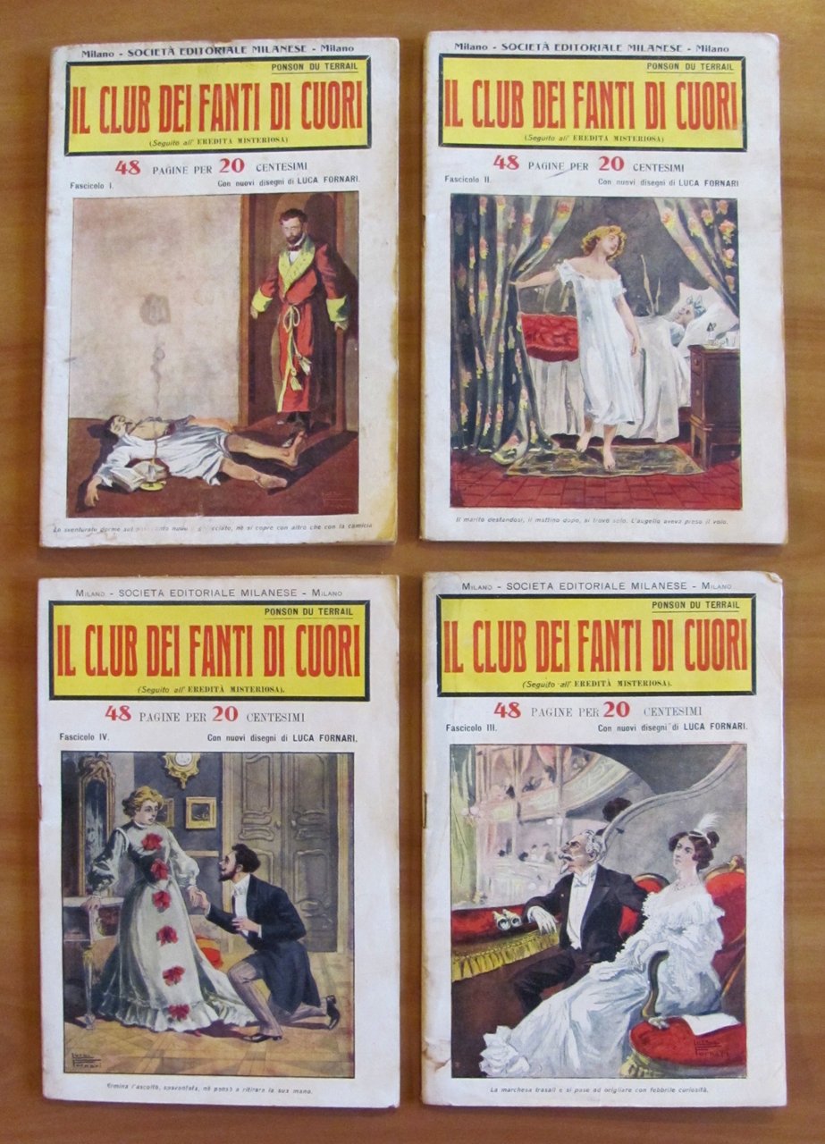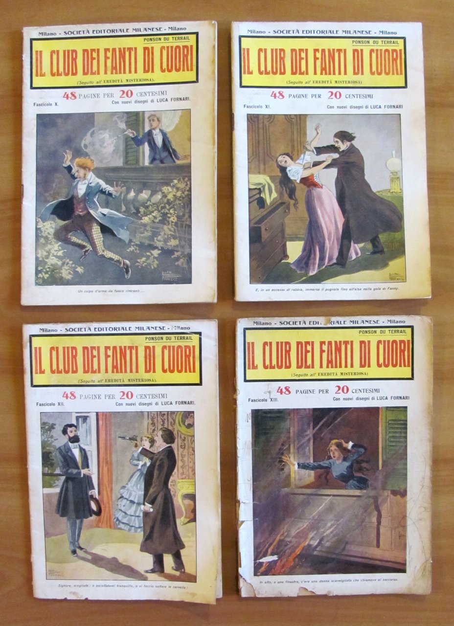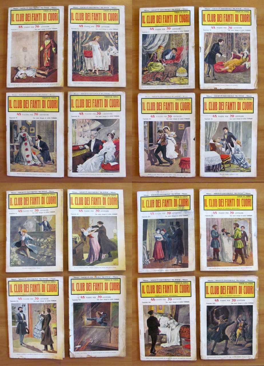 Collezione Completa 1/18 (manca il fascicolo VIII) - Volume I e II completi. Copertine a colori a tutti i fascicoli e 2 illustrazioni in b/n a piena pagina, in ciascun fascicolo, di Luca Fornari. Società Editoriale Milanese - Milano, s.d. anni '20. Collezione in fascicoli sfusi 1/18 meno il N.8. Il Fascicolo 5 ha un taglietto passante al margine esterno delle pagine e ha la retrocopertina macchiata ma integra. Il Fascicolo 6 presenta lievi imperfezioni del tempo alle copertine con barbe al margine esterno di qualche pagina con piccolo taglietto passante. Il Fascicolo 7 ha un taglietto passante alla spilla centrale. Il Fascicolo 13 ha le copertine usurate con scritte a matita, taglietti passanti alla spilla centrale e lievi fioriture del tempo a qualche pagina. Il Fascicolo 17 ha dorso e copertine con usure e mancanze e graffio all'illustrazione del piatto, fioriture al margine esterno basso delle copertine e delle pagine. Tutti gli altri Fascicoli sono in Ottimo stato. 17x22,5; Le pagine del I volume (Fascicoli I/IX) sono 420. Le pagine del II Volume (Fascicoli X/XVIII) sono 416. rarissimi e in Buono stato. , Buono (Good)