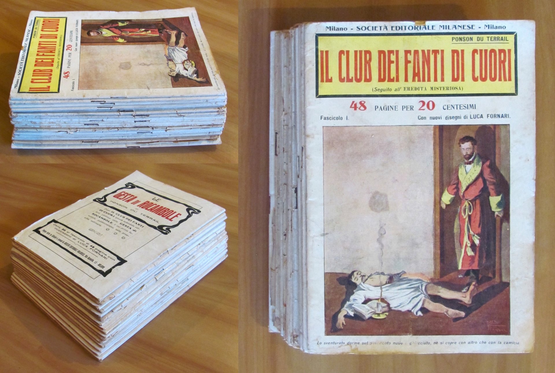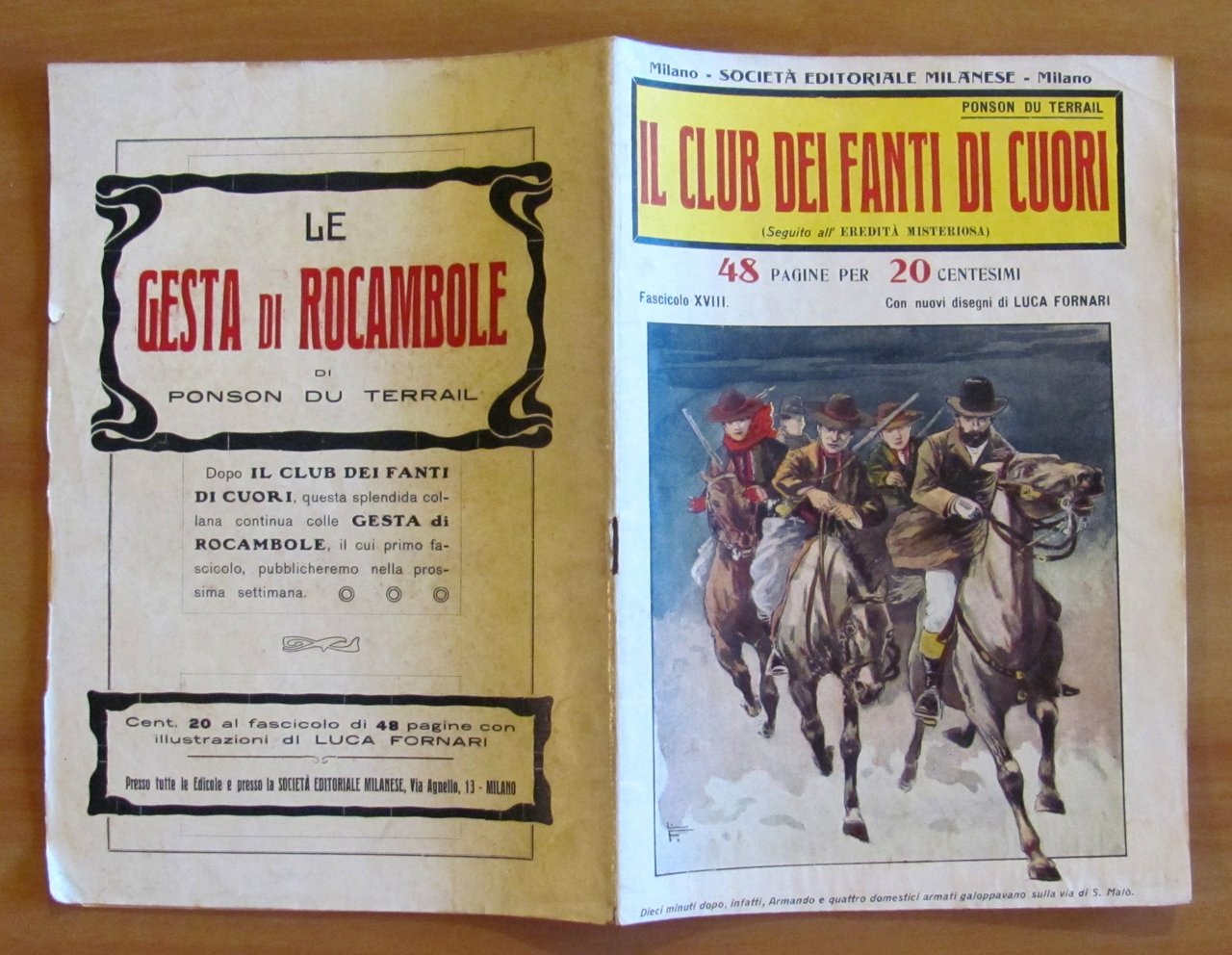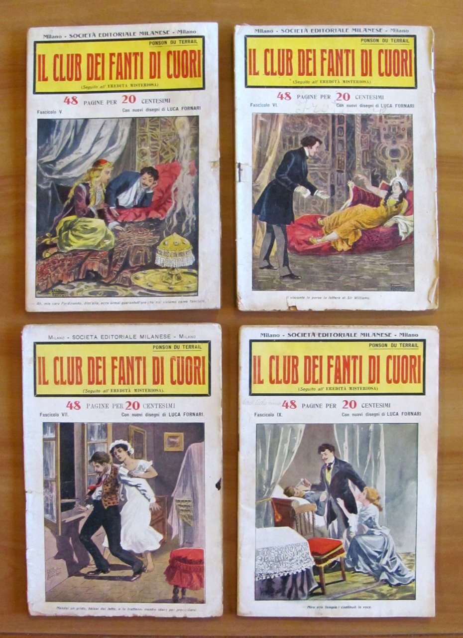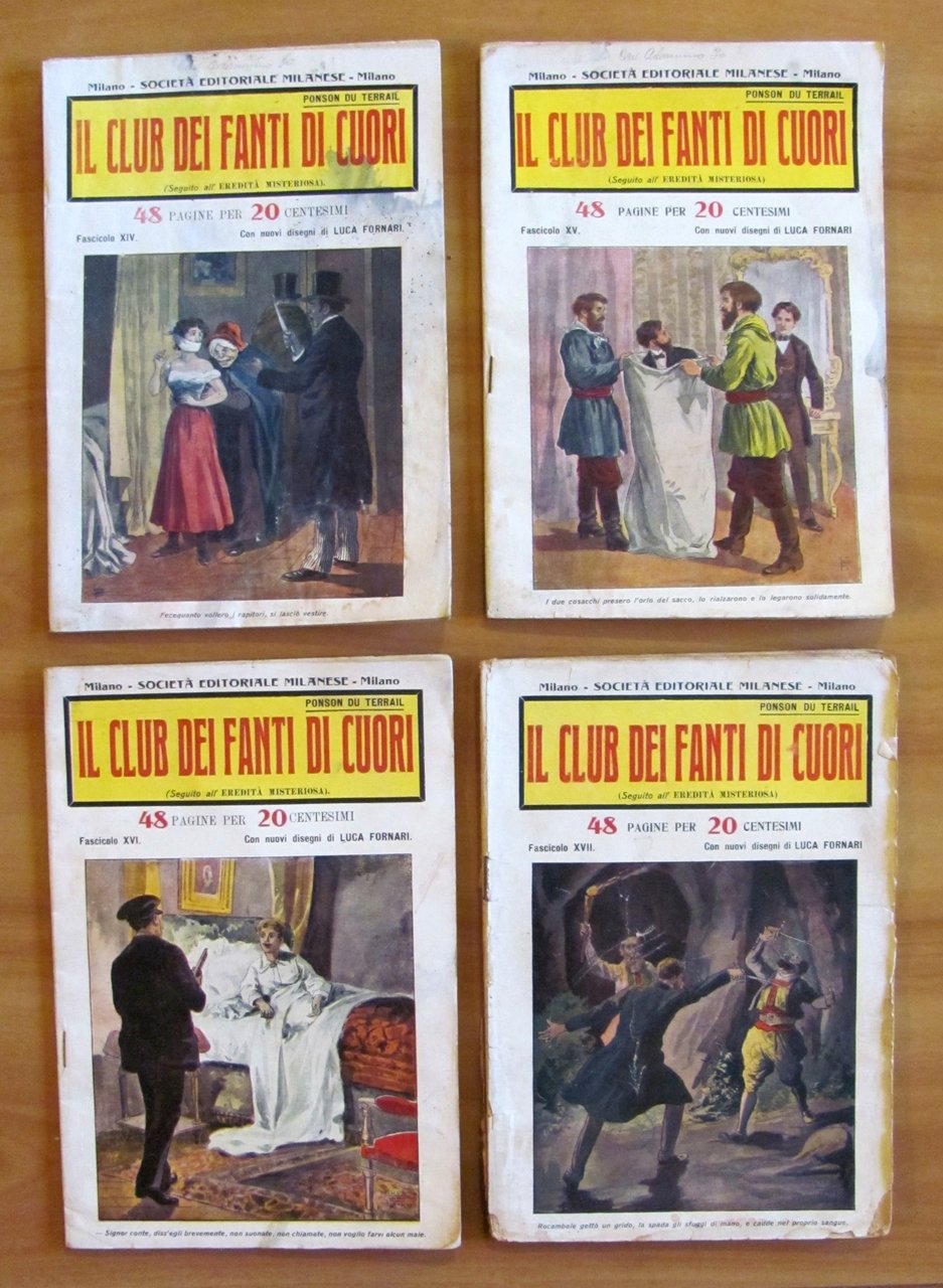 Collezione Completa 1/18 (manca il fascicolo VIII) - Volume I e II completi. Copertine a colori a tutti i fascicoli e 2 illustrazioni in b/n a piena pagina, in ciascun fascicolo, di Luca Fornari. Società Editoriale Milanese - Milano, s.d. anni '20. Collezione in fascicoli sfusi 1/18 meno il N.8. Il Fascicolo 5 ha un taglietto passante al margine esterno delle pagine e ha la retrocopertina macchiata ma integra. Il Fascicolo 6 presenta lievi imperfezioni del tempo alle copertine con barbe al margine esterno di qualche pagina con piccolo taglietto passante. Il Fascicolo 7 ha un taglietto passante alla spilla centrale. Il Fascicolo 13 ha le copertine usurate con scritte a matita, taglietti passanti alla spilla centrale e lievi fioriture del tempo a qualche pagina. Il Fascicolo 17 ha dorso e copertine con usure e mancanze e graffio all'illustrazione del piatto, fioriture al margine esterno basso delle copertine e delle pagine. Tutti gli altri Fascicoli sono in Ottimo stato. 17x22,5; Le pagine del I volume (Fascicoli I/IX) sono 420. Le pagine del II Volume (Fascicoli X/XVIII) sono 416. rarissimi e in Buono stato. , Buono (Good)