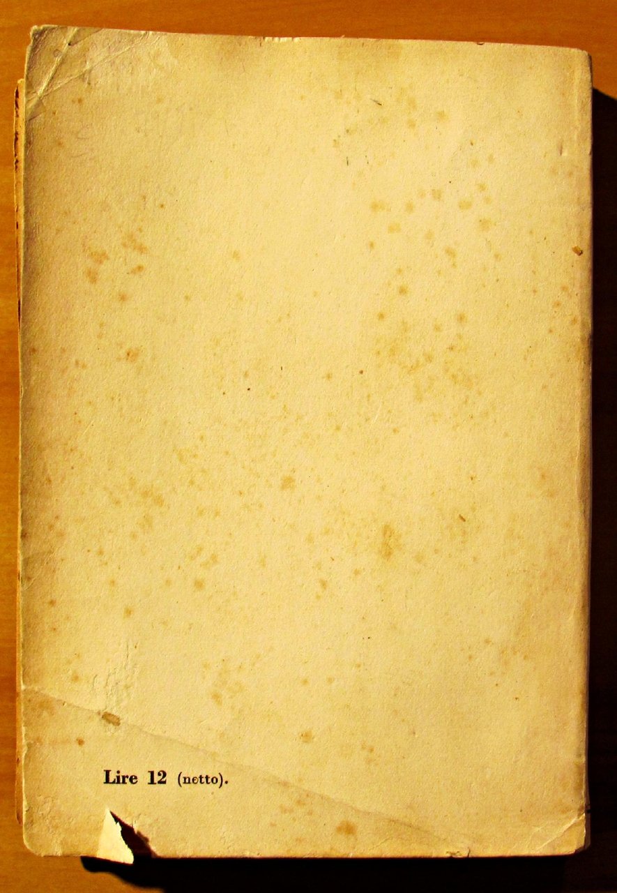 Vallecchi - Firenze, I edizione 1920. Brossura editoriale con alcune macchie al piatto e mende al dorso. Restauro al margine basso in II^ di copertina, mancanza dell'angolino alto esterno di una pagina e piccolo restauro al taglio esterno di un'altra. Peraltro fresco e pulito. 13x19; pp.272. BUONO STATO , Molto buono (Very Good)