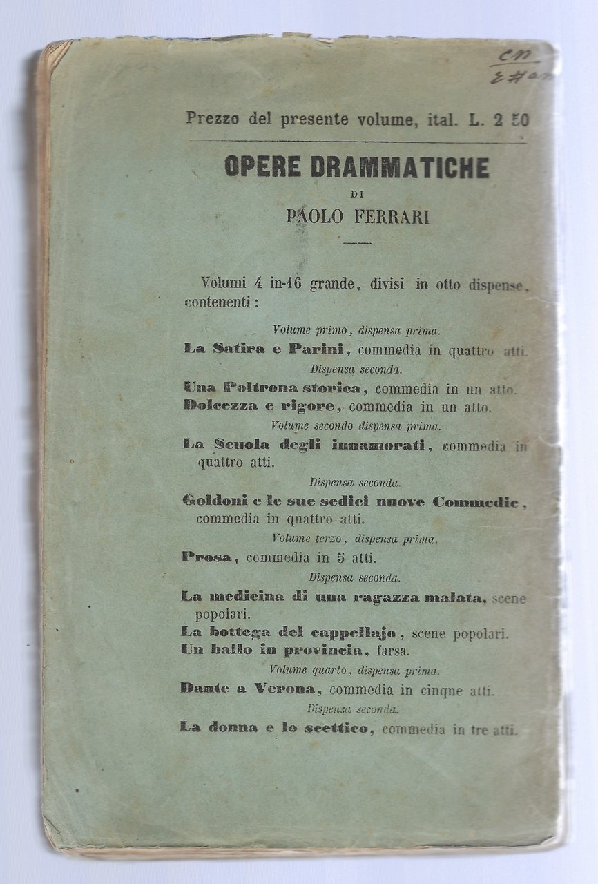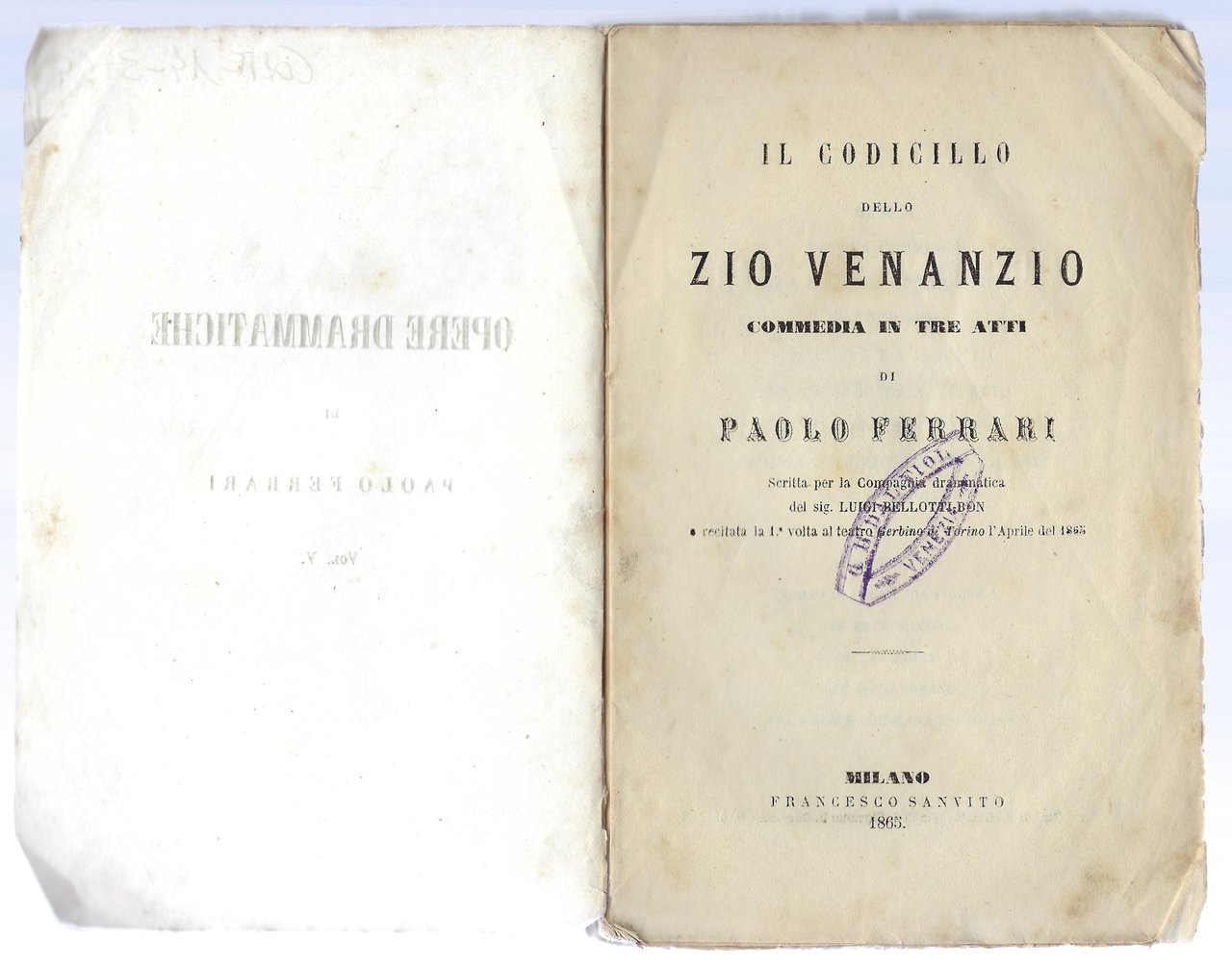 "Il codicillo dello zio Venanzio" Opere drammatiche di Paolo Ferrari