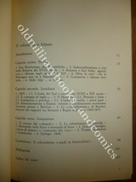 TITOLO: IL COLONIALISMO FELPATO. GLI SVIZZERI ALLA CONQUISTA DEL REGNO DELLE DUE SICILIE (1800-1848) DESCRIZIONE: Sellerio Ed. Palermo 1988 br. ed. con sovracc. ill. con alette pp. 112 in 8°. CONDIZIONI: Ottime. PESO / WEIGHT: 200 gr. without package