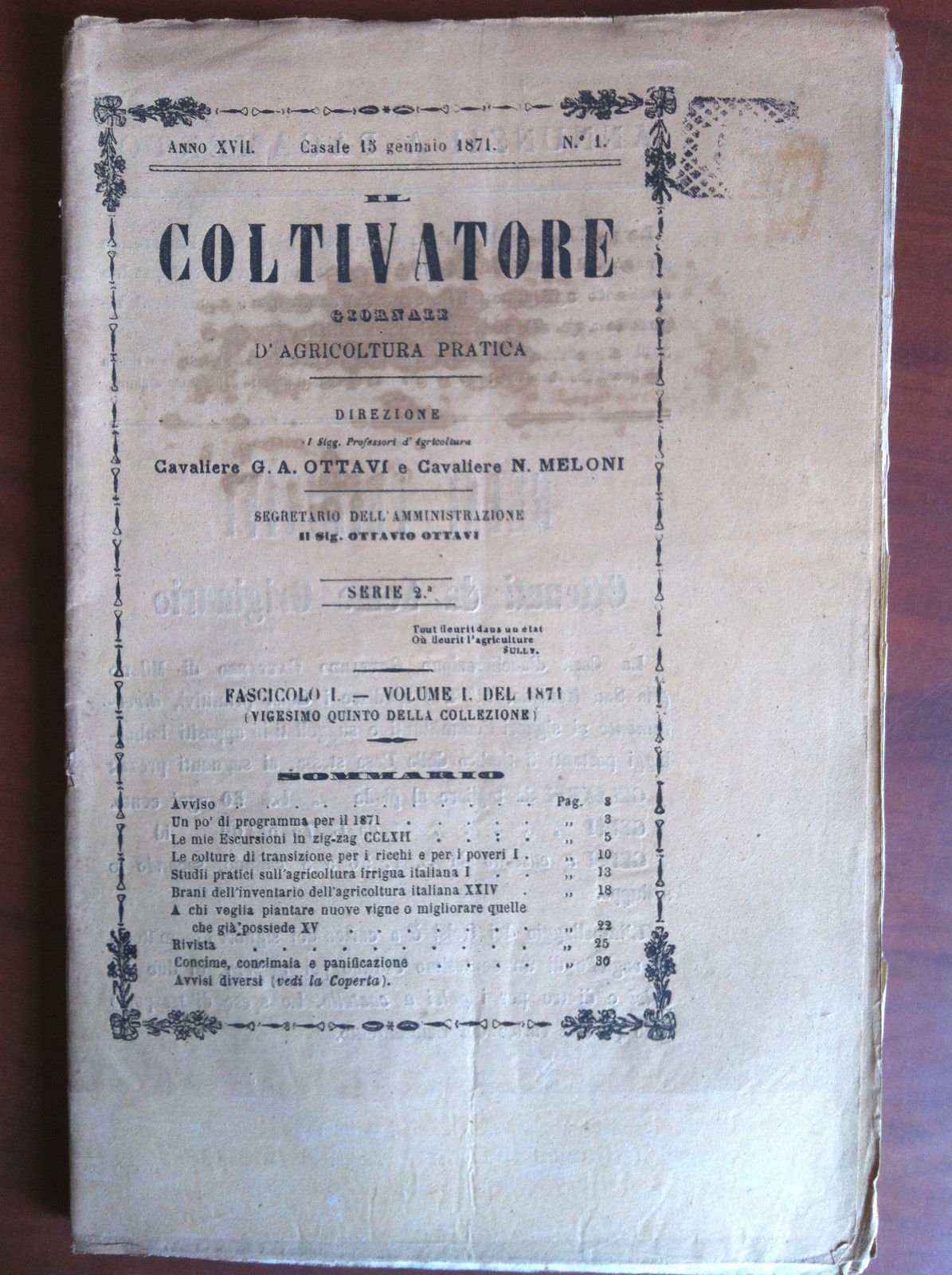 Il Coltivatore Anno XVIII Casale 13 Gennaio 1871 n^ 1 - E14014