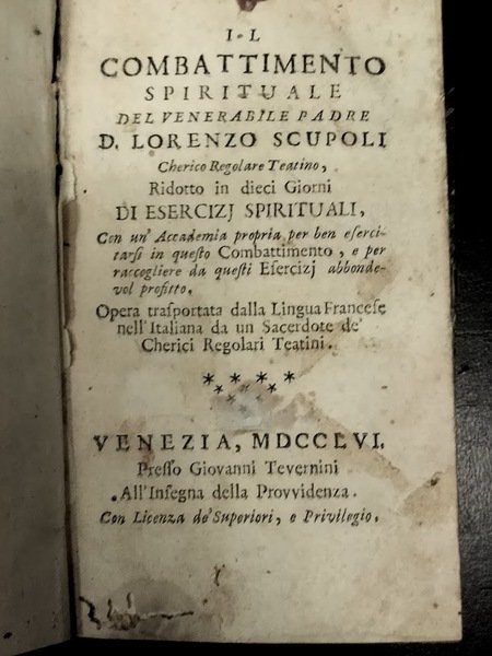 Il combattimento spirituale. Ridotto in dieci giorni di esercizj spirituali.